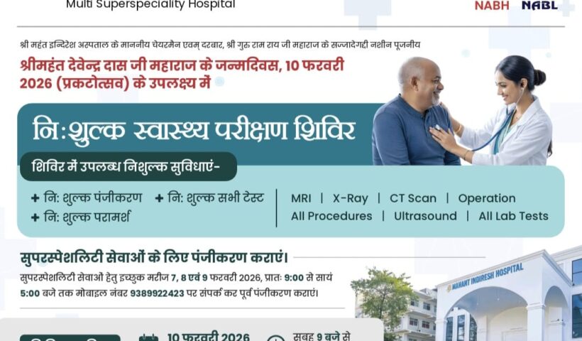 श्री महंत इन्दिरेश अस्पताल में 10 फरवरी को विशाल निःशुल्क स्वास्थ्य शिविर का आयोजन दरबार श्री गुरु राम राय जी महाराज के पूजनीय श्री महंत…
