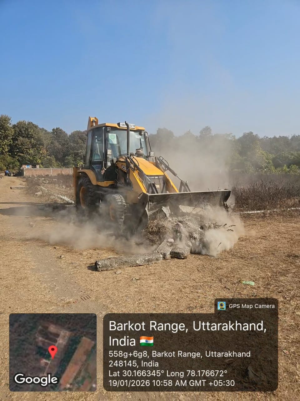 प्राधिकरण की टीम द्वारा घमंडपुर, रानीपोखरी, देहरादून क्षेत्र में दिनेश सजवाण, अवतार सिंह एवं राजेन्द्र सिंह कैंतुरा द्वारा लगभग 15 से 20 बीघा भूमि में की जा रही अवैध प्लॉटिंग पर ध्वस्तीकरण की कार्रवाई की गई। मौके पर बिना किसी वैधानिक अनुमति के आंतरिक सड़कों का निर्माण, भू-खण्डों का सीमांकन तथा कॉलोनी विकसित करने की तैयारी की जा रही थी। कार्रवाई के दौरान अवैध रूप से निर्मित सड़कों, पिलरों, सीमांकन एवं अन्य अस्थायी संरचनाओं को ध्वस्त किया गया।