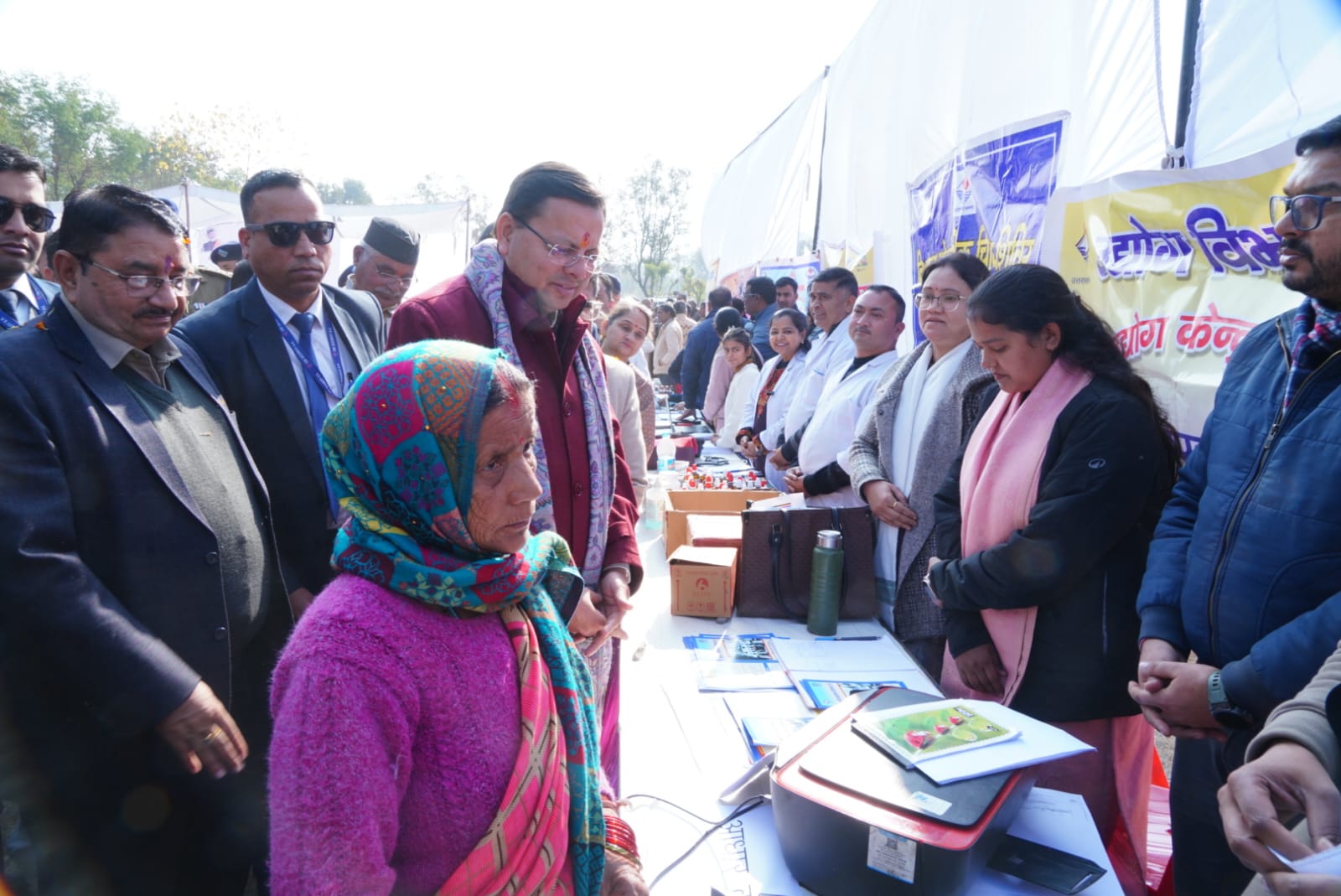 मुख्यमंत्री पुष्कर सिंह धामी ने ‘जन-जन की सरकार, जन-जन के द्वार’ अभियान के क्रियान्वयन की जमीनी पड़ताल के लिए शुक्रवार को देहरादून जिले के अंतर्गत रायपुर ब्लॉक के खैरीमान सिंह में आयोजित न्याय पंचायत स्तरीय शिविर का निरीक्षण किया।