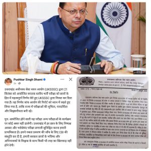 धामी सरकार का फैसला : उत्तराखंड अधीनस्थ सेवा चयन आयोग द्वारा स्नातक परीक्षा रद, आदेश जारी, पेपर लीक मामले की सीबीआई जांच होगी